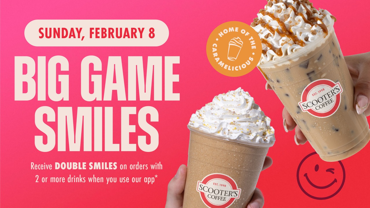OMAHA, Neb., Feb. 4, 2026 – Scooter’s Coffee is drawing up a game-winning play to keep the gameday energy flowing for football’s biggest weekend. On Sunday, Feb. 8, 2026, you can score Double Smiles on any order with two or more drinks through the Scooter’s Coffee mobile app to help fuel your gameday!