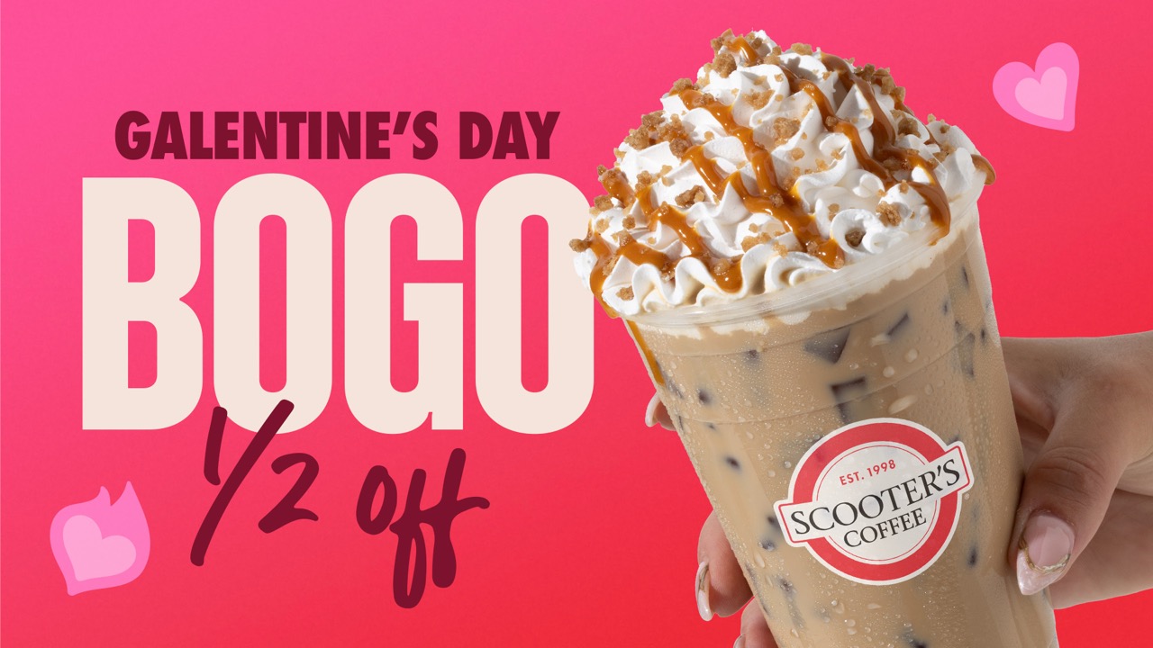 OMAHA, Neb., Feb. 10, 2026 – The best day of the year for celebrating your besties is here: Galentine’s Day, the day before Valentine’s Day. Scooter’s Coffee is helping you show the love to your closest besties early with four days of friends celebrating friends, featuring a Buy One, Get One Half Off offer from Tuesday, Feb. 10, through Friday, Feb. 13, 2026. This special deal can be redeemed only once per customer through the Scooter’s Coffee mobile app, so choose carefully: Who’s going to be your special Galentine this year?