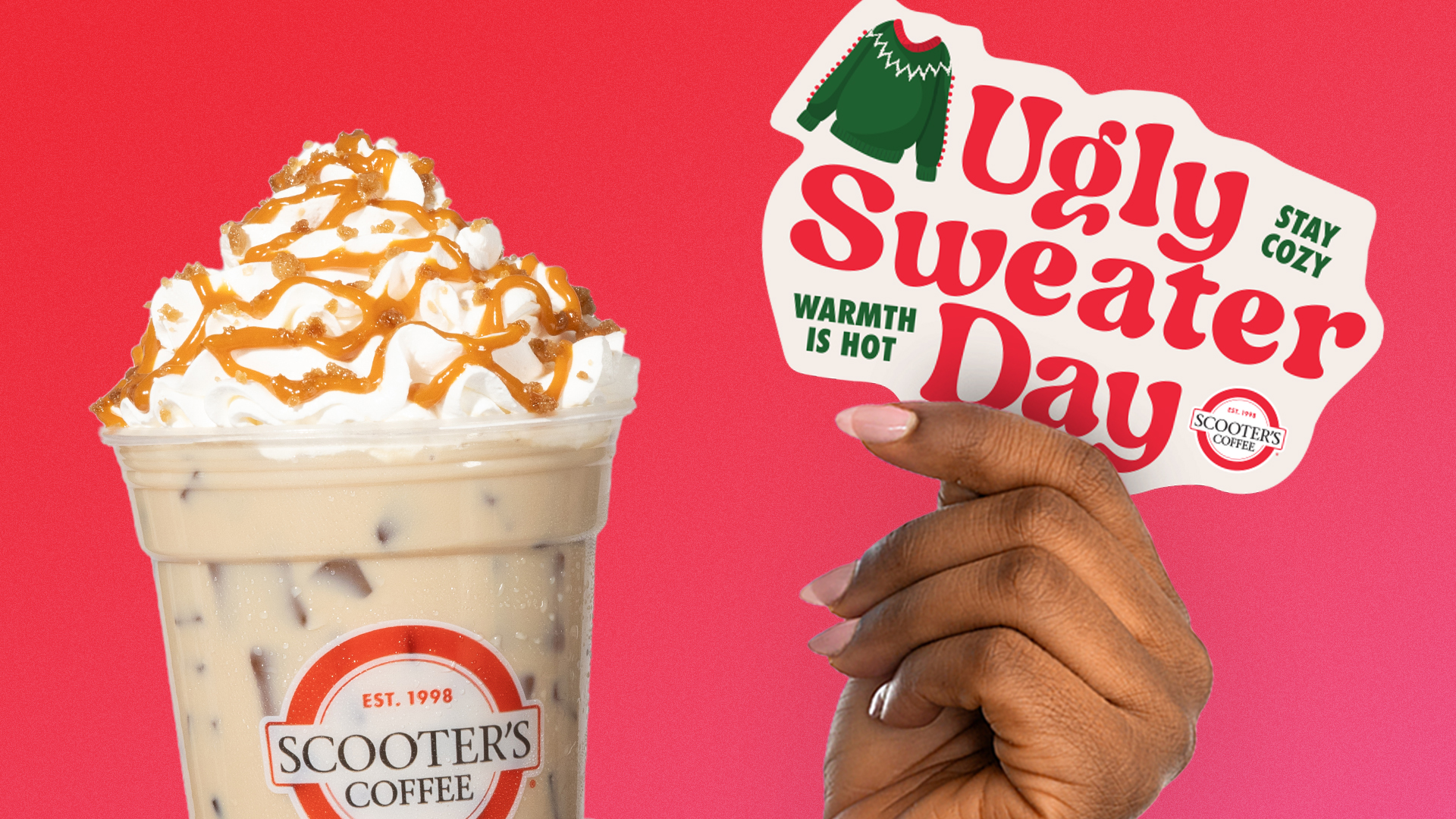 OMAHA, Neb., Dec. 15, 2025 – Mark your calendars! On Friday, Dec. 19, Scooter’s Coffee is turning up the cozy vibes for National Ugly Sweater Day. Slip on your snuggliest sweater and Scoot on Around® to any Scooter’s Coffee location for a limited-edition Ugly Sweater Sticker, because festive fun deserves commemorative flair!