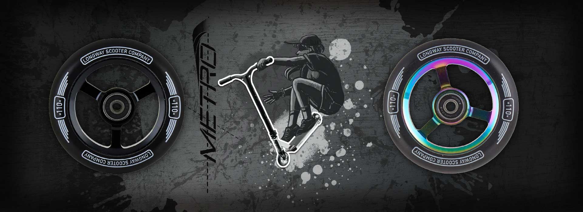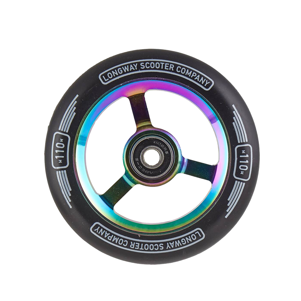 A simple and strong core design using a high rebound PU with 88A hardness. Approved by the riders it features 2 high quality ABEC-9 bearings and a spacer with Longway logo.