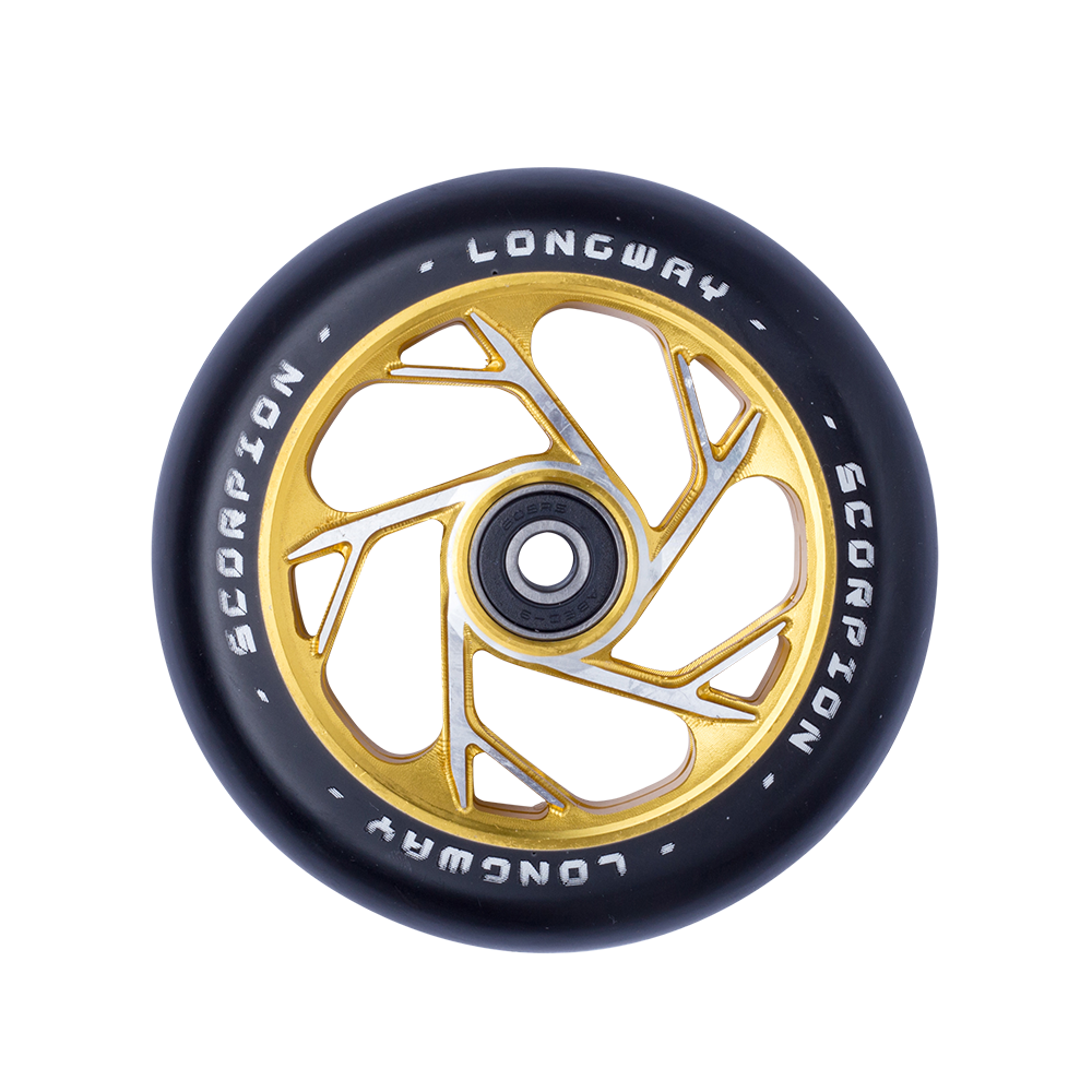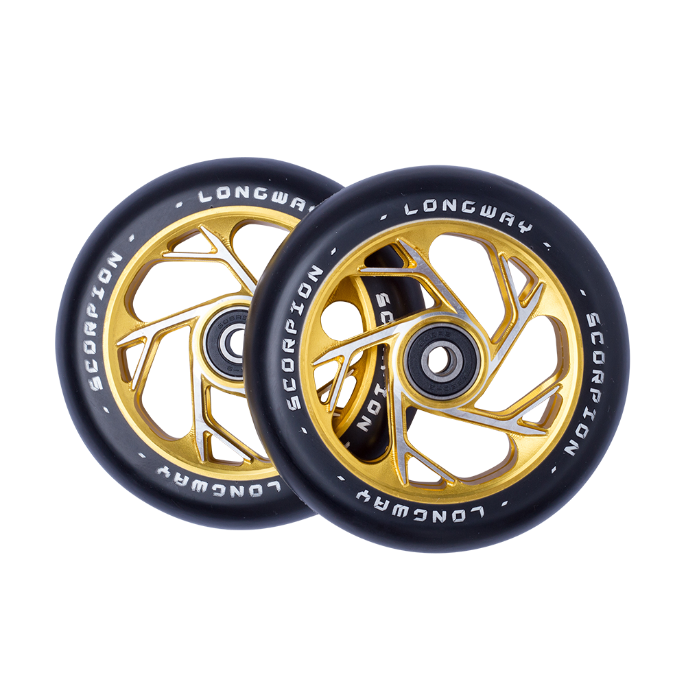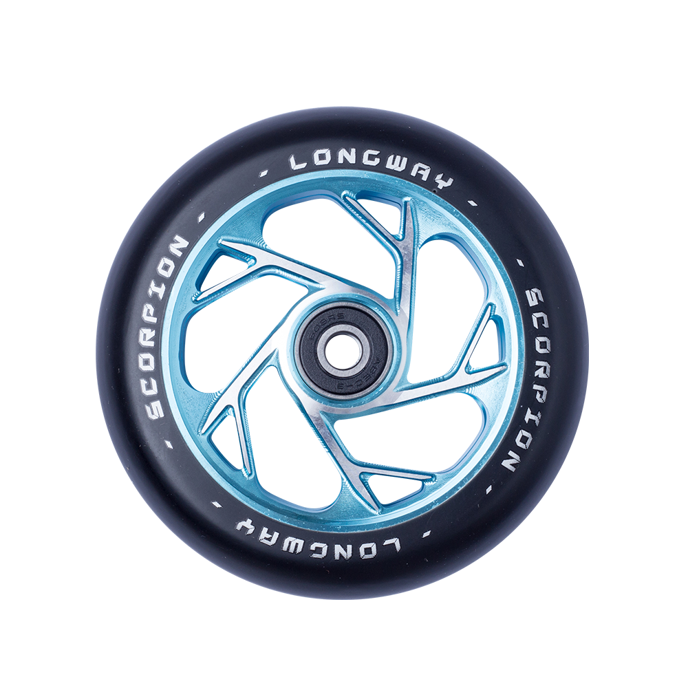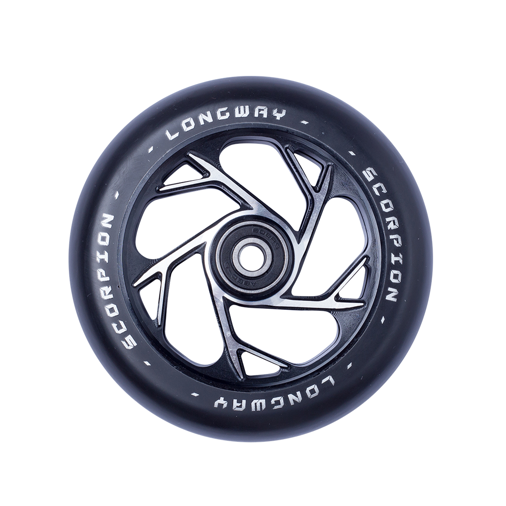 The SCORPION dual core is a unique technical achievement. Inspired by high-end sports car wheels we brought this highly complex core structure to the scootering scene! 20 supports of 10 parallel twin spokes provide a light weight and high strength.