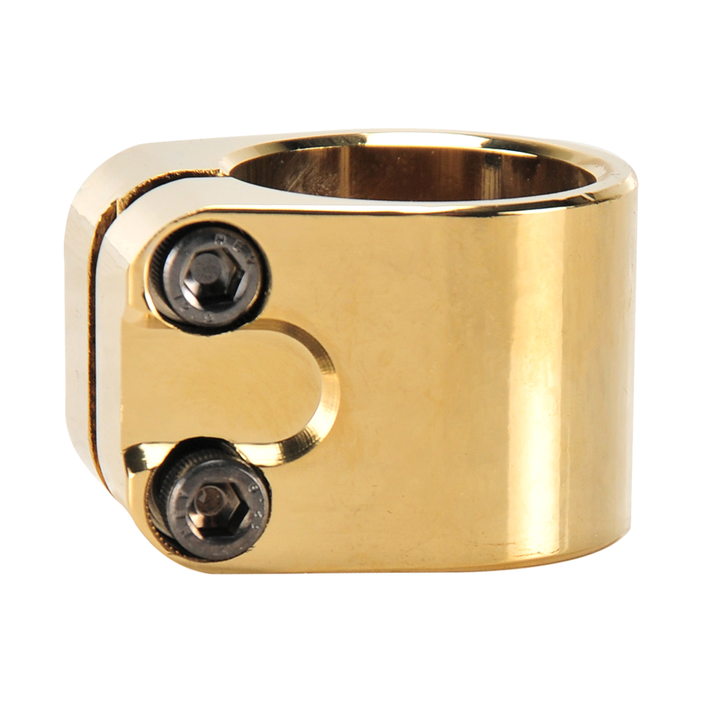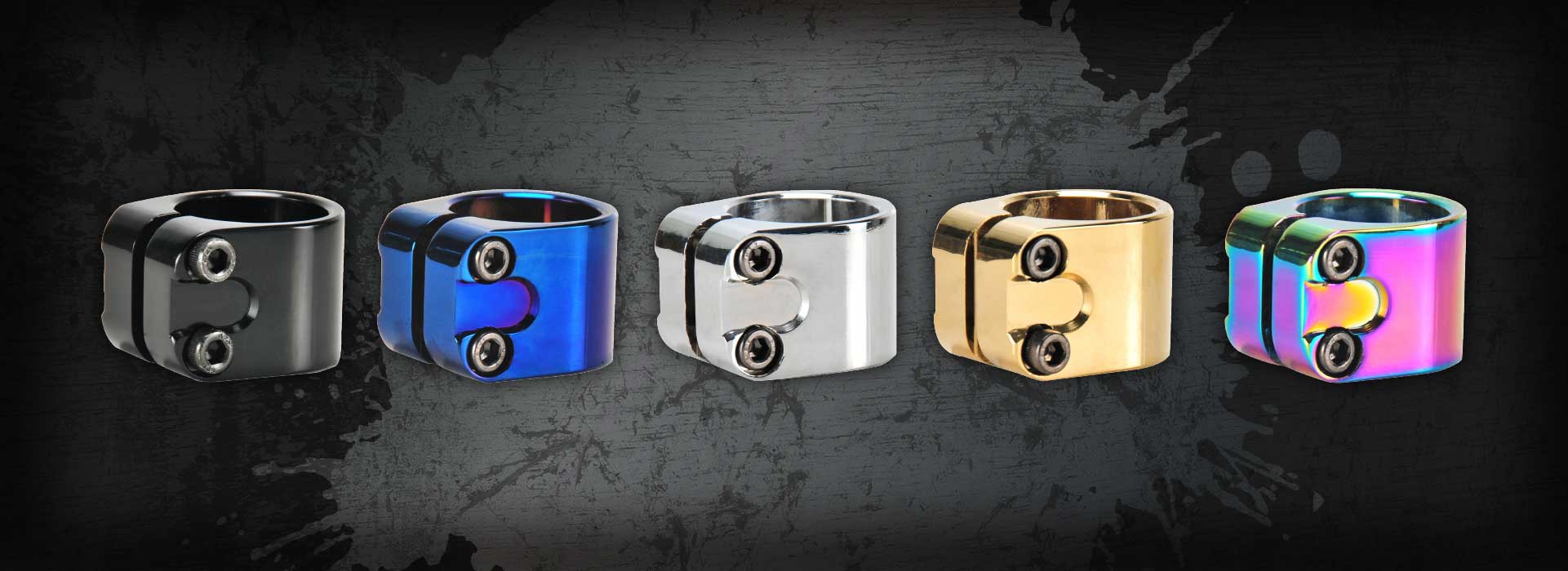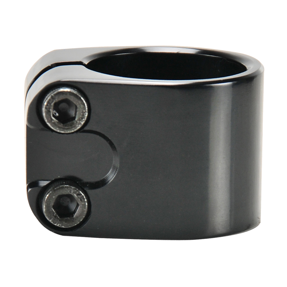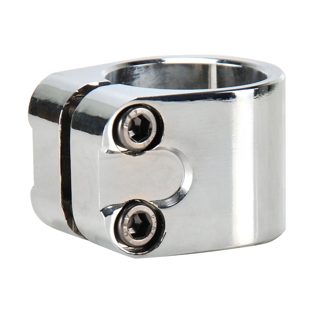 Double clamp NOW WITH UNSTRIPPABLE INSERTS. Fits aftermarket to both: chromoly (1 1/4“ OD) and aluminum ( 1 3/8“ OD) bars. It Comes with a free shim.