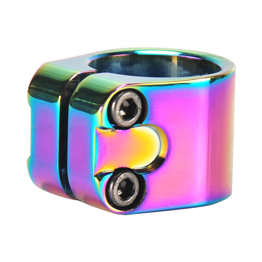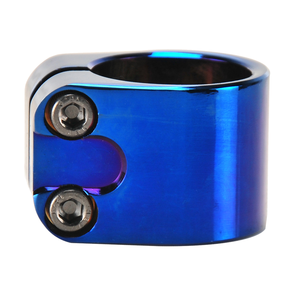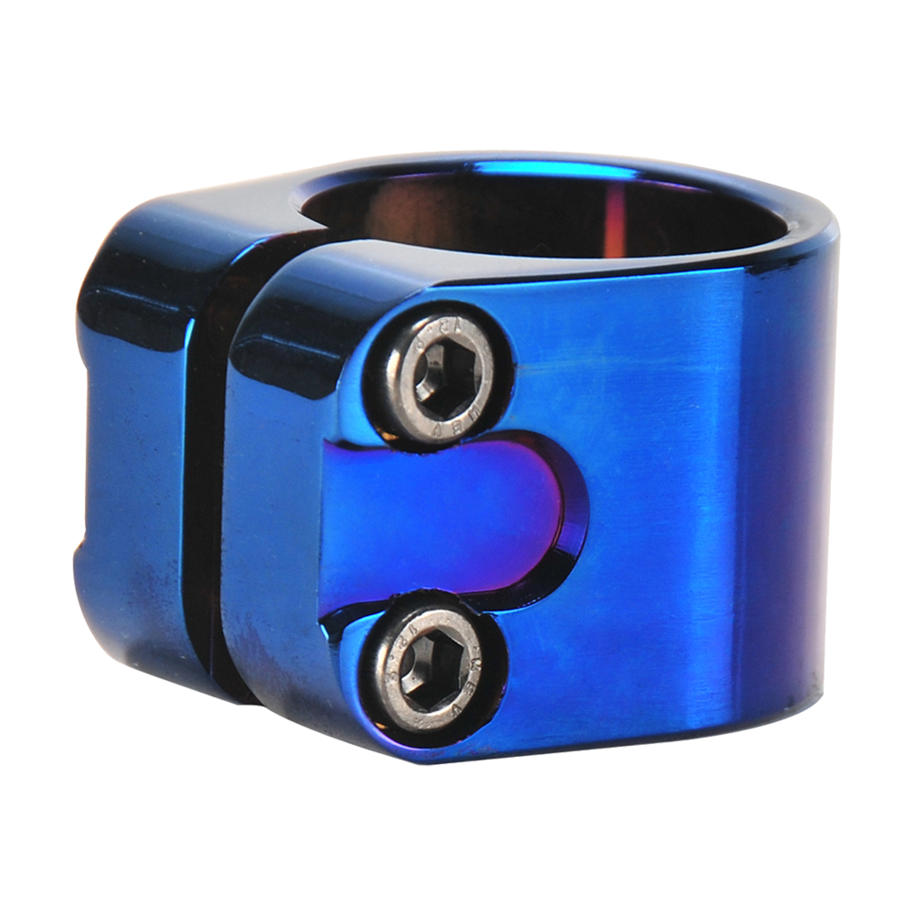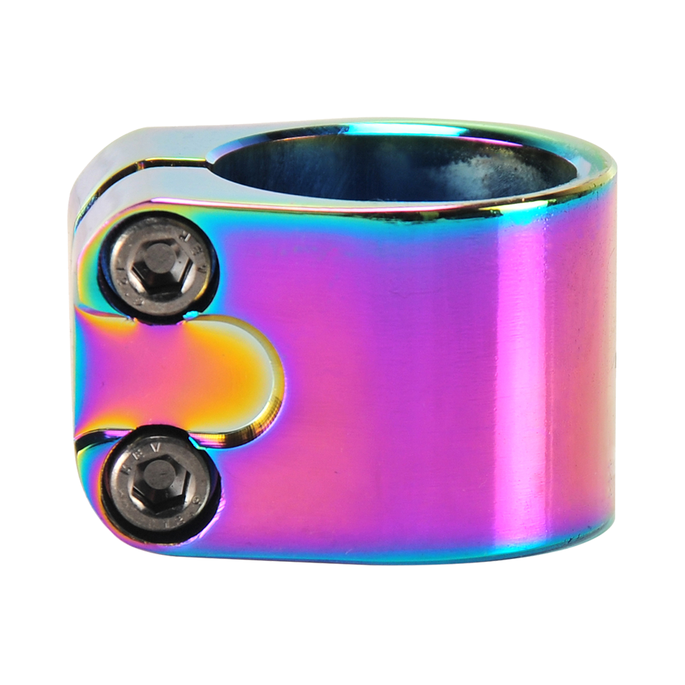 Double clamp NOW WITH UNSTRIPPABLE INSERTS. Fits aftermarket to both: chromoly (1 1/4“ OD) and aluminum ( 1 3/8“ OD) bars. It Comes with a free shim.