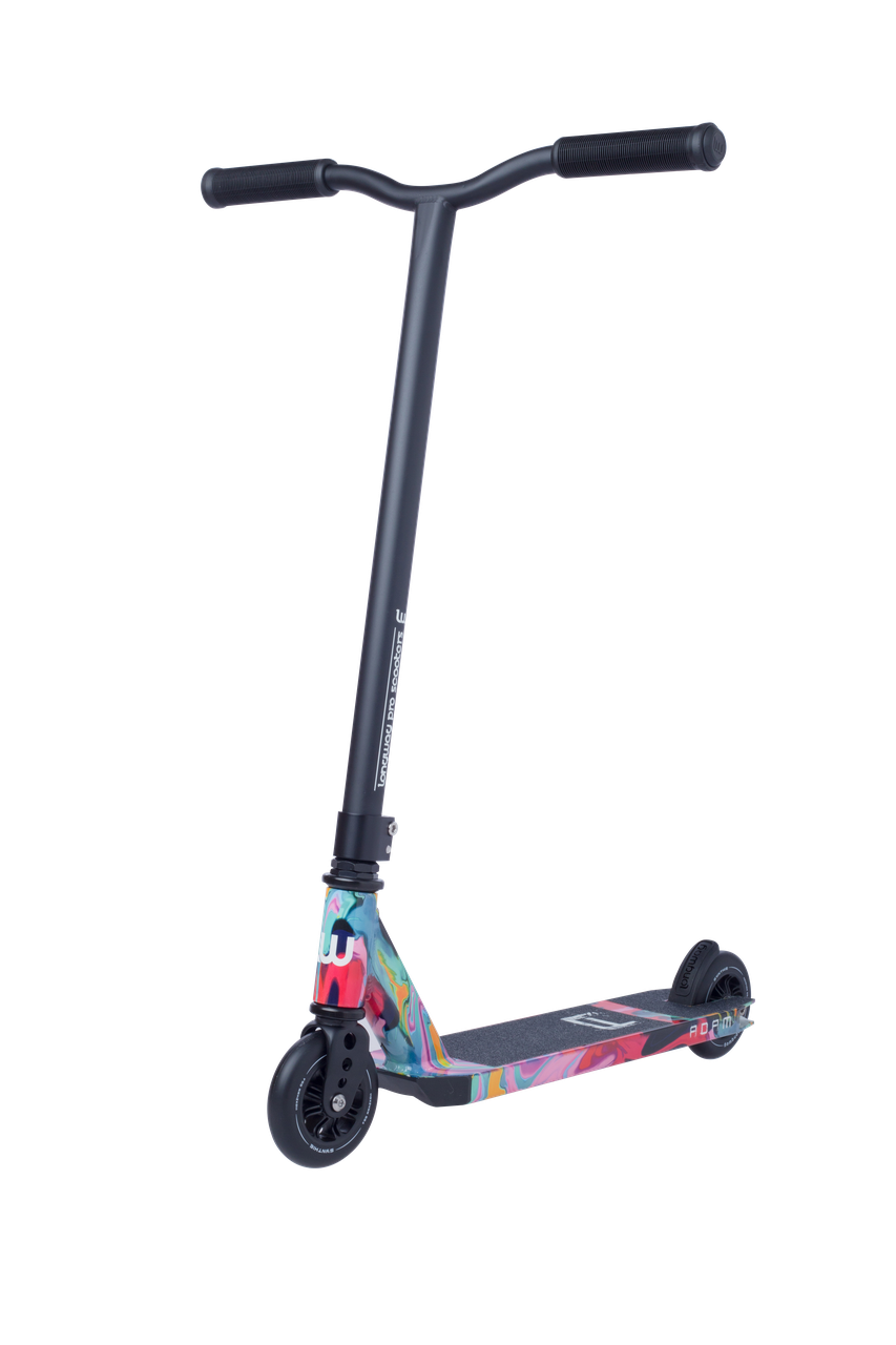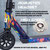 ultra chic graphics thanks to the high-end water transfer surface coating. In combination with anti-slip grip tape coating and extra soft TPR handles, this scooter is sure to grab everyone’s