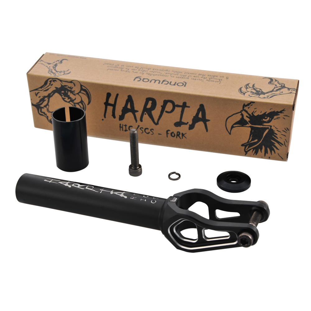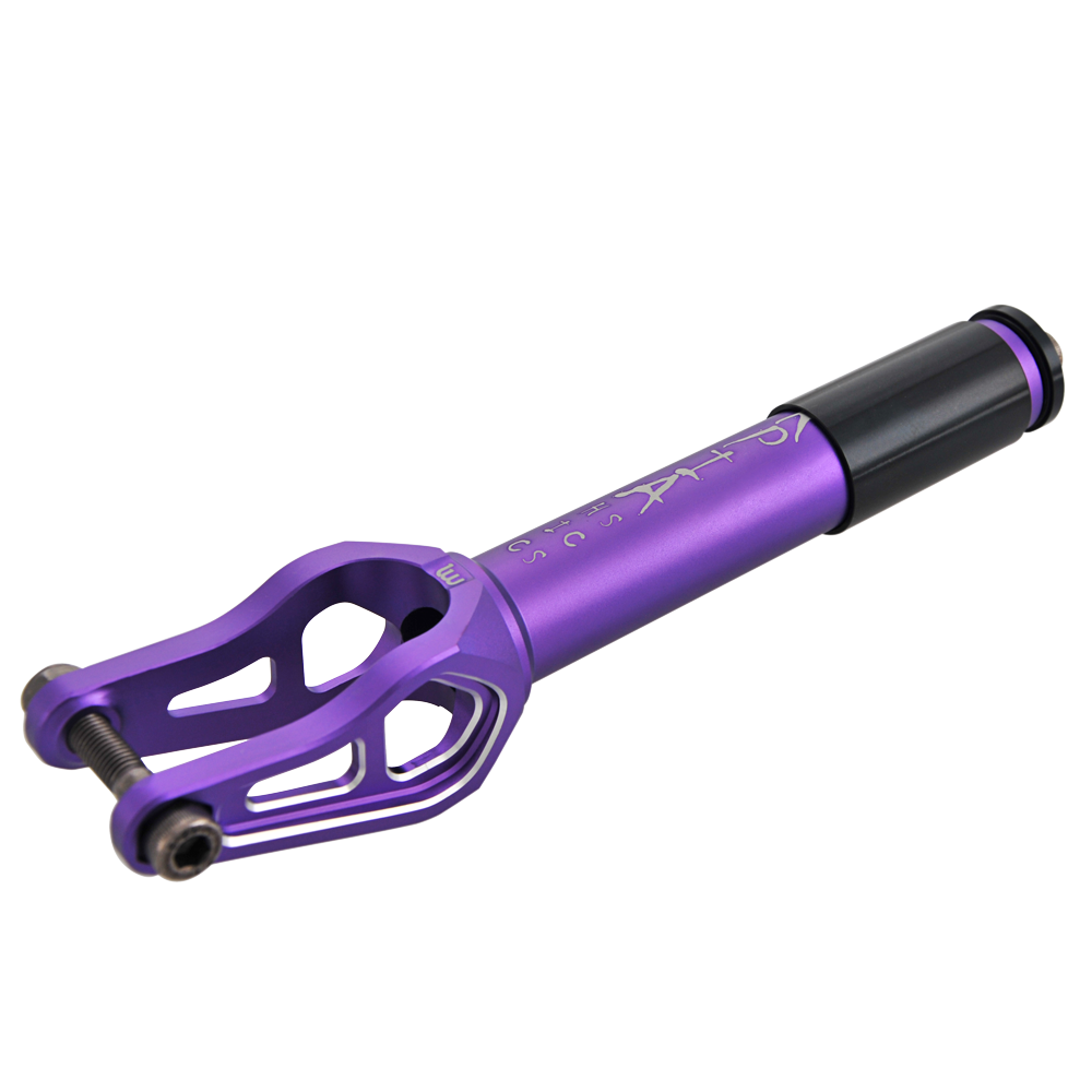 This new fork design comes with chamfered edges of the CNC cut outs. It ist strong, light and Its threadless design for HIC / IHC compression can fit 110 mm,120 mm and 125 mm wheels.