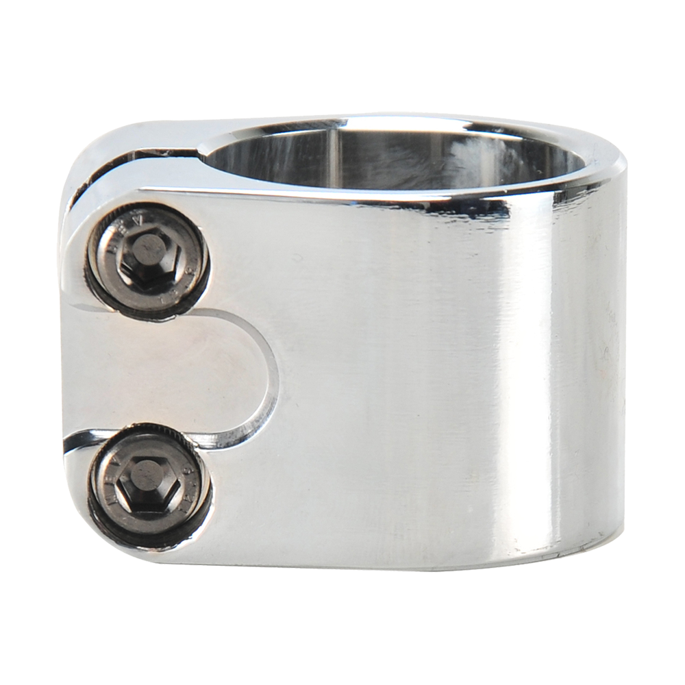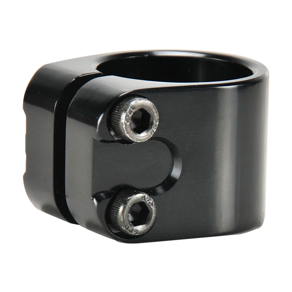 Double clamp NOW WITH UNSTRIPPABLE INSERTS. Fits aftermarket to both: chromoly (1 1/4“ OD) and aluminum ( 1 3/8“ OD) bars. It Comes with a free shim.